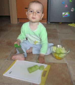 Pro mě je to velká pomoc, když si moje děti sami vyndají sklenici a nalijí si pití. Pokud něco rozlijí, což se může stát každému, vezmou hadr a uklidí po sobě. Pomáhají mi s nádobím, vařením, pečením, prádlem, nakupováním,…