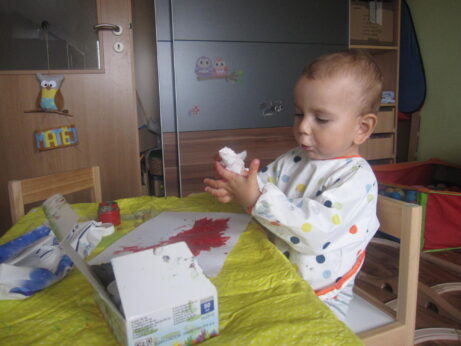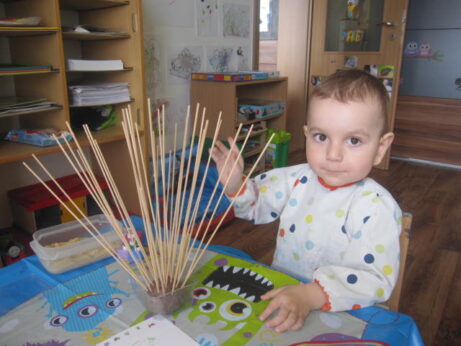 ale vůbec to nevadilo. Maminky vyráběly a děti prozkoumávaly hernu, nebo spíše učebnu, kde byla spousta krásných hraček, neboli pomůcek. Každá z nich měla svůj smysl a účel.